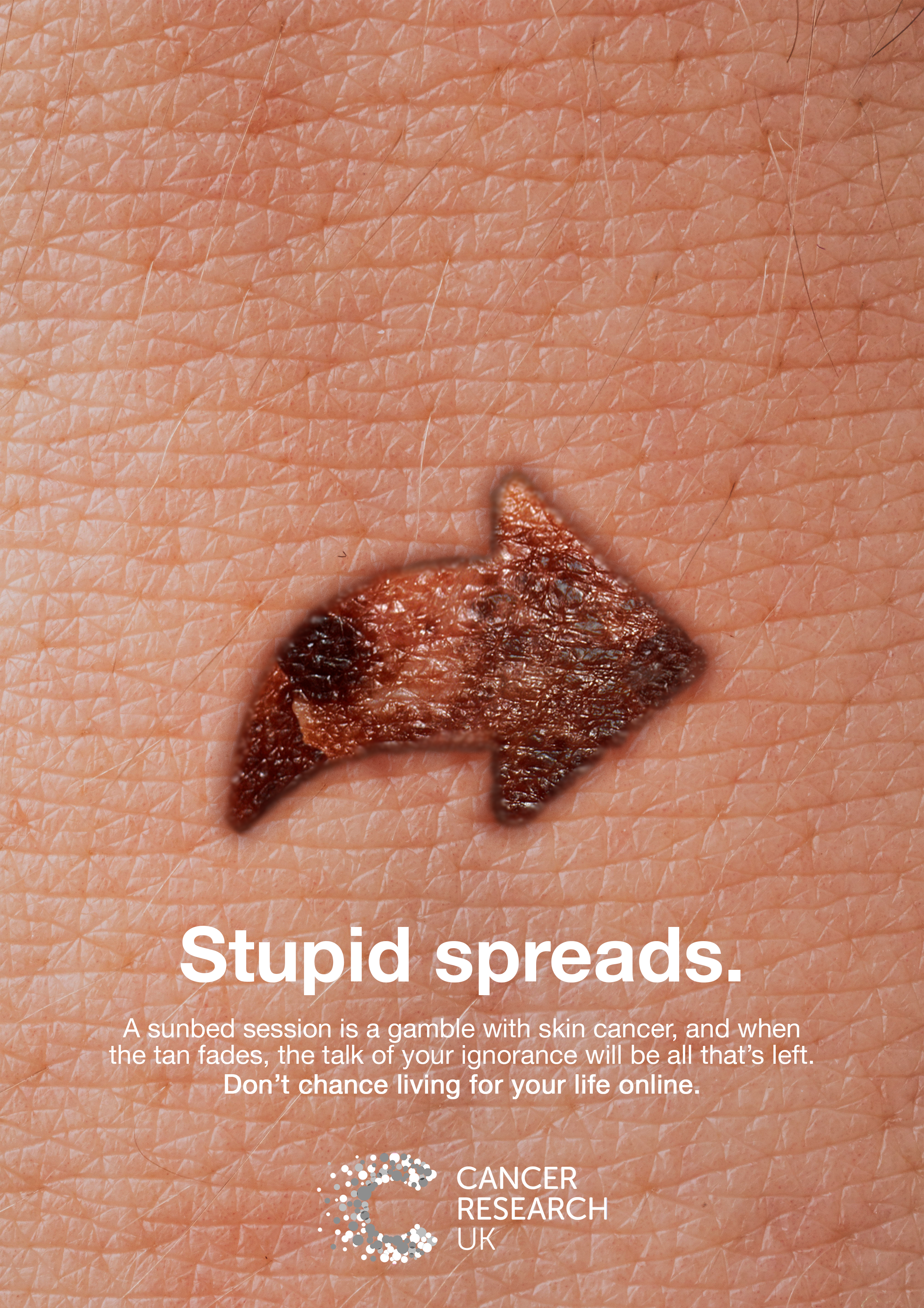 To convey the risk of sunbeds to those who really need to hear it, transparent stickers with on-the-nose, UV-reactive copy — only visible under ultraviolet light — will be placed in sunbeds.Without the ultraviolet, they’ll be near undetectable to the naked eye.